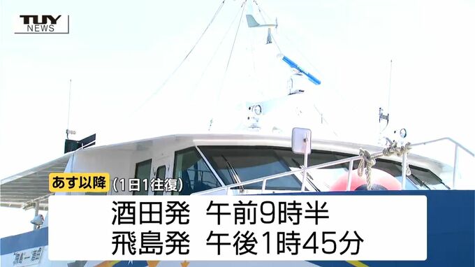 運航初日のきょうは昼ごろに往復しましたが、あす以降は酒田発が午前9時半、飛島発が午後1時45分の1日1往復となります。