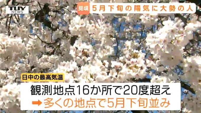 きょう日中の最高気温はもっとも上がったのが山形で夏日に迫る24.6度。22ある気象台の観測地点のうち、16か所で20度を超え、多くの地点で5月下旬並みの陽気となりました。