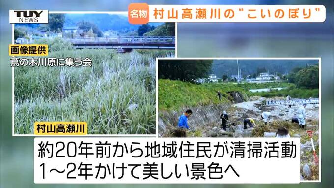 酒井義孝さん「きれいにしただけで、なんか物足りないね、という感じだったんです。じゃあ、鯉のぼりでも上げましょうか、ということで最初40匹くらいから始めたんです。言いだしっぺ!だからやめられないんですよ~」