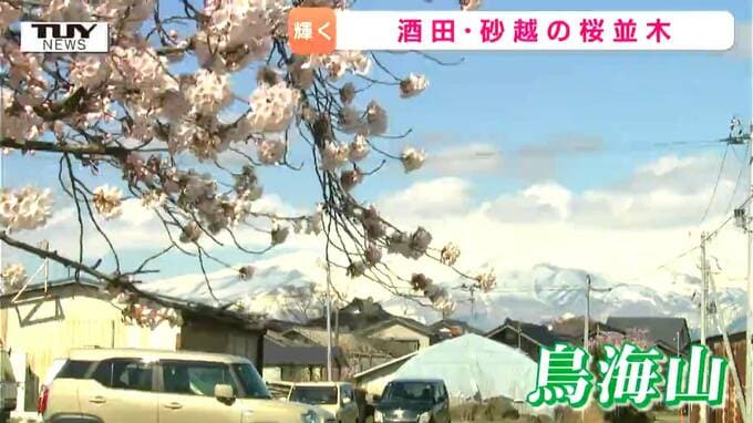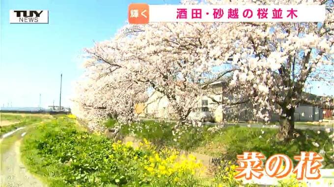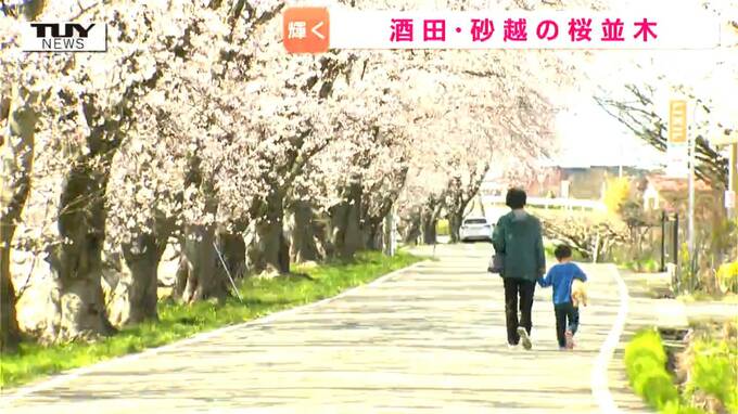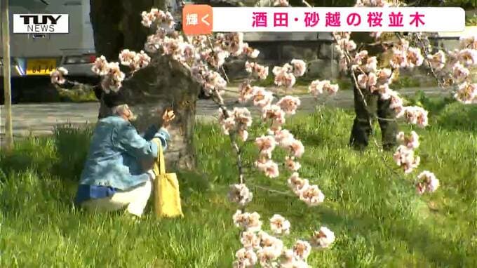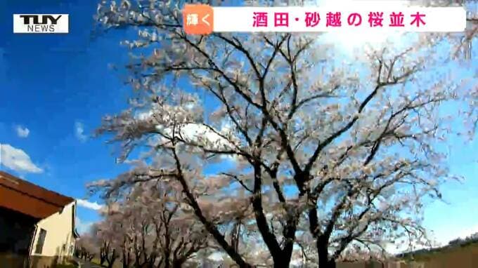 庄内の美しいサクラの映像です。山形県酒田市砂越地区の桜並木が今見ごろを迎えています。
