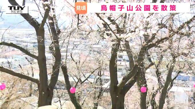 見上げれば桜。見下ろせば桜。これが、烏帽子山公園の魅力です。