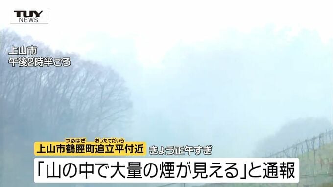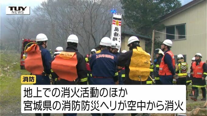 ■立ちのぼる煙、消火活動の様子