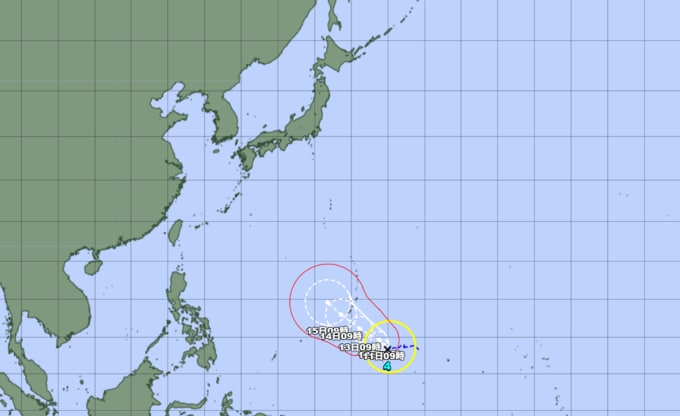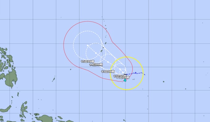進行方向、速さ 西北西 15 km/h (7 kt)