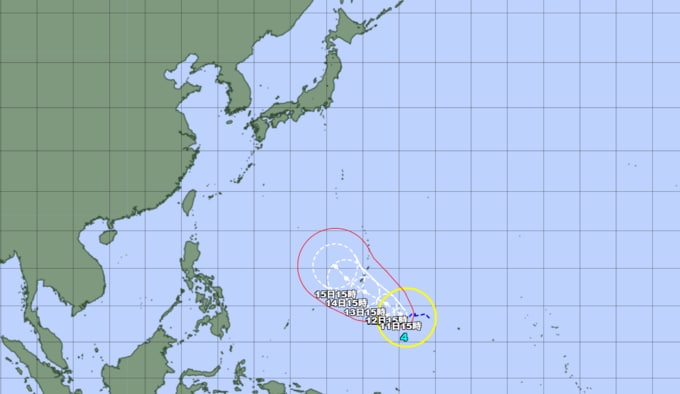予報円の中心 北緯15度20分 (15.3度)