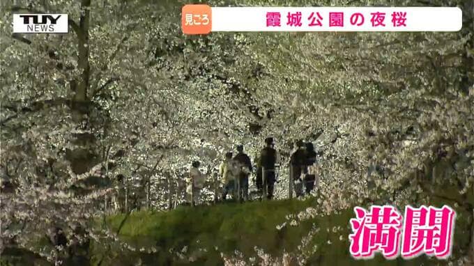 幻想的な景色を見ようと大勢の人! 霞城公園で夜桜のライトアップ お堀沿いの桜も満開!(山形市) 2026年4月10日(金) 19:45 国内 山形市の霞城公園では、見ごろを迎えた夜桜のライトアップが行われています。昨夜も幻想的な夜桜を見ようと、大勢の人が訪れていました。佐藤友美アナウンサー「山形市の霞城公園です。こちらを見ると桜が水面にし…