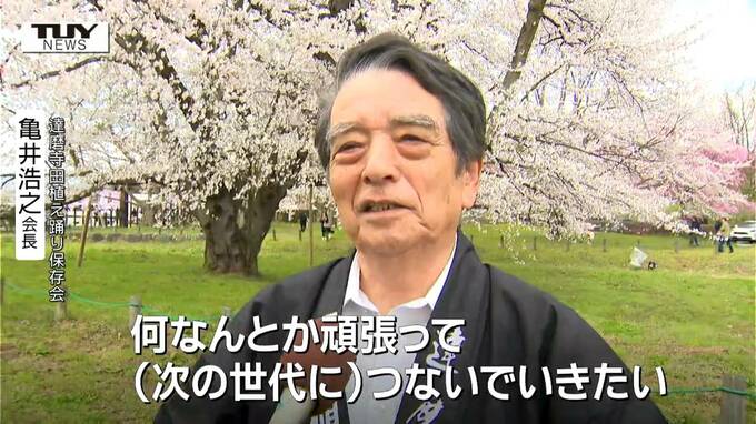 達磨寺田植踊り保存会・亀井浩之会長「コメ問題などを払しょくするようにみんなで五穀豊穣を願って踊った。なんとかがんばって(次の世代に)つないでいきたい」