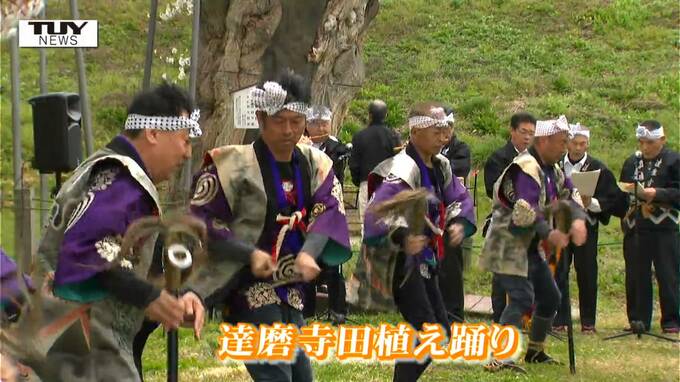 きょう、満開の桜のもと「達磨寺田植え踊り」が披露されました。