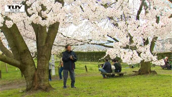 訪れた人たちは、咲き誇る桜との共演に見入っていました。