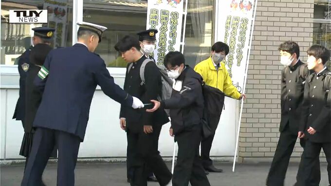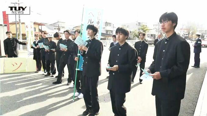 高校生の自転車事故が多くなる春の時期に合わせ、きょう、県立山形工業高校の生徒と警察が、今月から始まった青切符制度の周知とヘルメットの着用を呼びかけました。