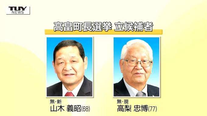 高畠町長選挙に立候補しているのは、届け順に、新人で前の町議会議員、山木義昭さん(68)と、現職で2期目を目指す高梨忠博さん(77)の2人です。