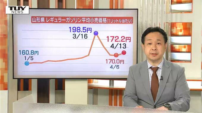 こちらは県内レギュラーガソリンの価格の推移を表したグラフです。先月、政府の補助金が出されるようになってから3週連続の値下がりとなっていましたが、県内最新の価格は172円20銭となり、値上がりに転じました。