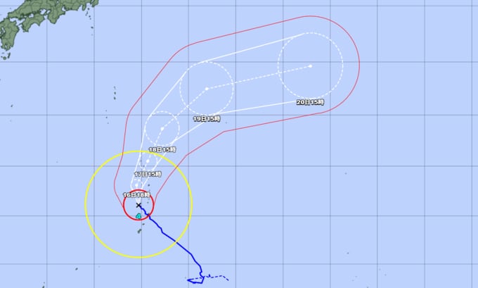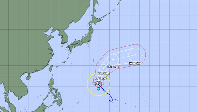 予報円の中心 北緯18度05分 (18.1度)