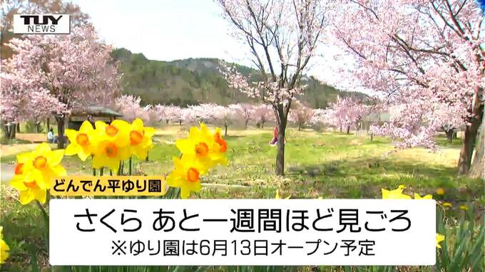 どんでん平ゆり園のさくらはあと一週間ほど楽しめそうだということです。