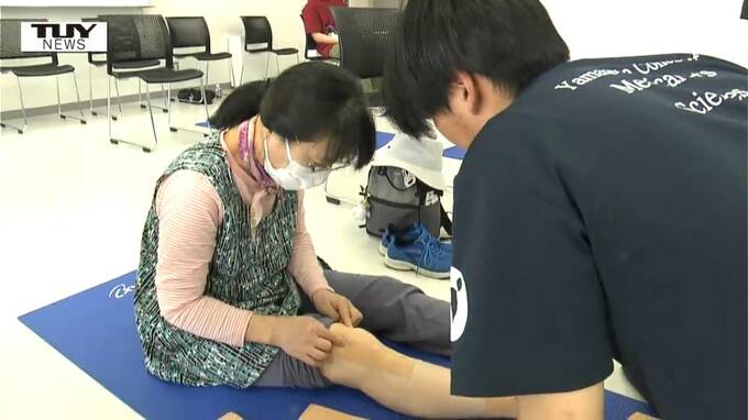 理学療法や作業療法を学ぶ山形医療技術専門学校で開かれた学園祭には、一般の人も訪れ、リハビリ体験やテーピング講座などの企画を体験しました。