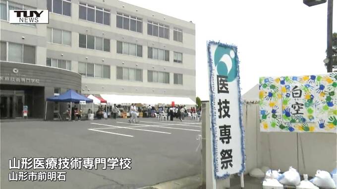 山形市の専門学校できょう、学園祭が開かれ、医療現場や車いすバスケットボールの体験会などが行われました。