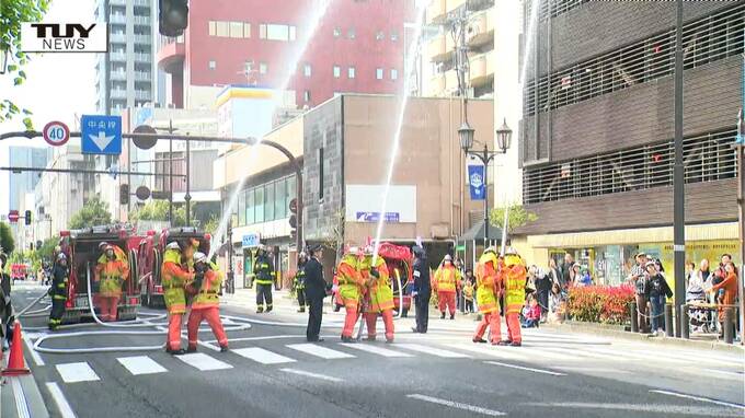 山形市の中心部で一斉放水 山形市春季消防演習 2026年4月19日(日) 18:03 国内 山形市の春季消防演習がきょう行われ、中心市街地を舞台に、一斉放水などが披露されました。これは、市民の防災への意識を高めてもらおうと、毎年行われているものです。演習には26台の消防車両と山形市消防本部の…