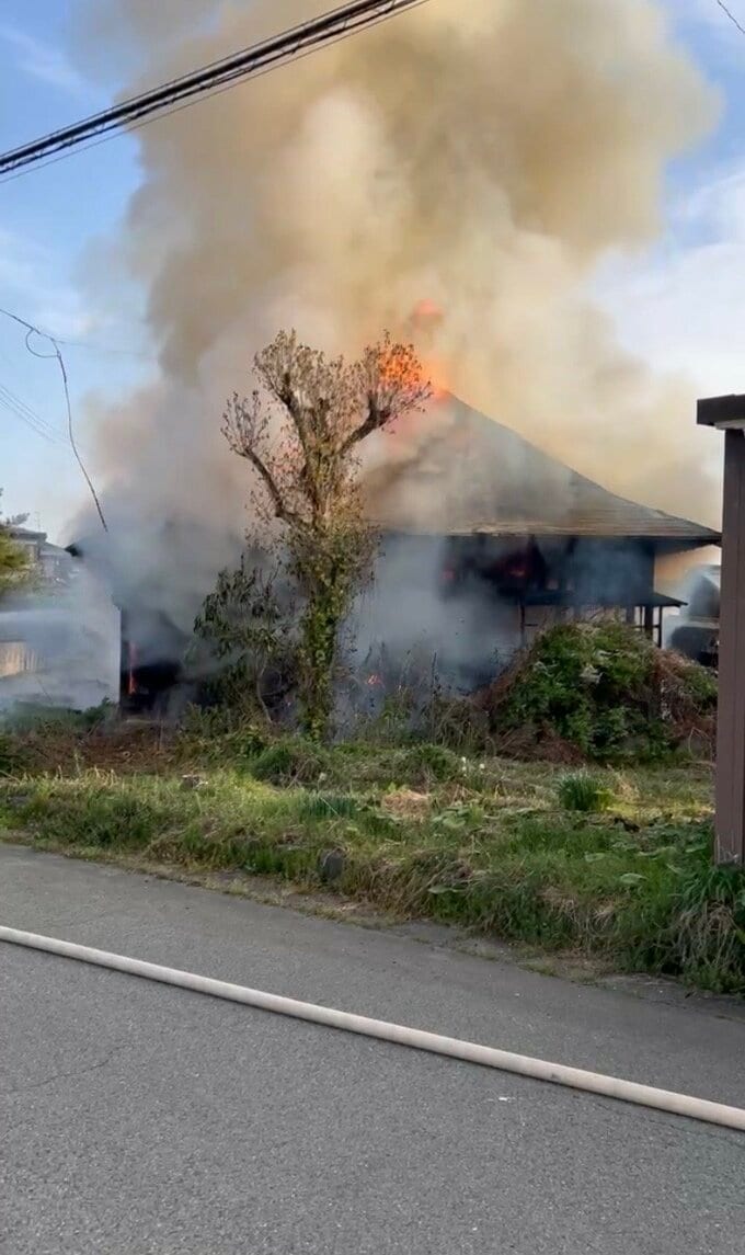 ■煙に包まれ燃える建物(視聴者提供画像)