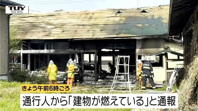 消防や警察によりますと、きょう午前6時ごろ、山形市上椹沢で通行人から「建物が燃えている」と通報があったということです。