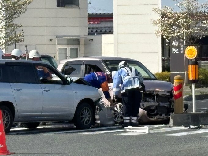 【現場画像】1人が意識不明に 山形市嶋北で交通事故 車体は大きく破損