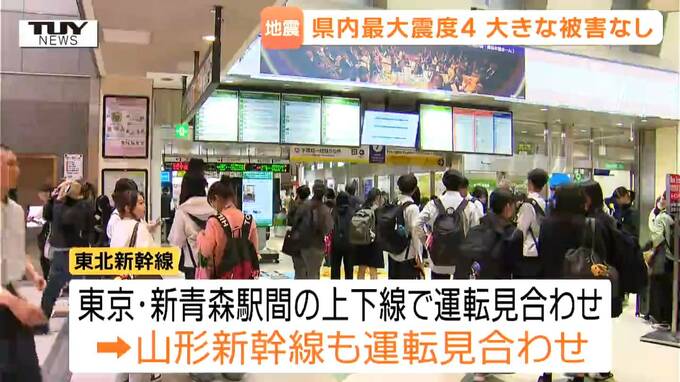 きょう午後4時53分ごろ、青森県で最大震度5強を観測する強い地震がありました。山形県内では村山や庄内で最大震度4を観測しています。