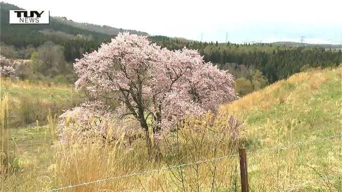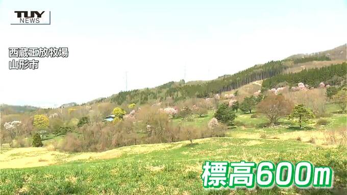 西蔵王放牧場のオオヤマザクラは、例年、4月下旬から5月上旬にかけて見頃を迎えるということですが、今年はすでに満開となっています。