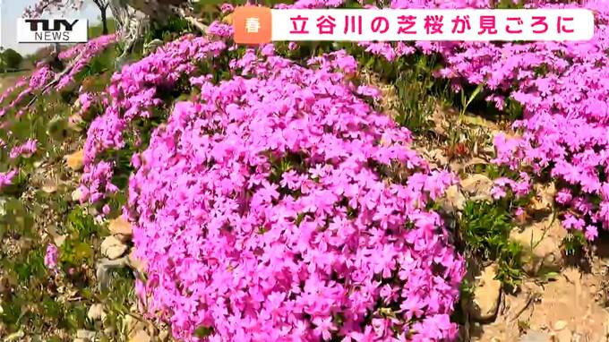 ボランティアによって守られる景色 春の名物 「立谷川の芝桜」が見ごろ! 荒地だった場所が美しい景色に(山形) 2026年4月21日(火) 19:08 国内 各地の桜シーズンが徐々に終わりを迎える中、いま、立谷川の芝桜が見頃となっています。きょうも華やかな景色が訪れる人を楽しませていました。天童市の春の名物「立谷川の芝桜」です。 大内希美アナウンサー「昼…