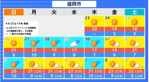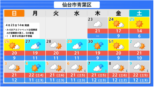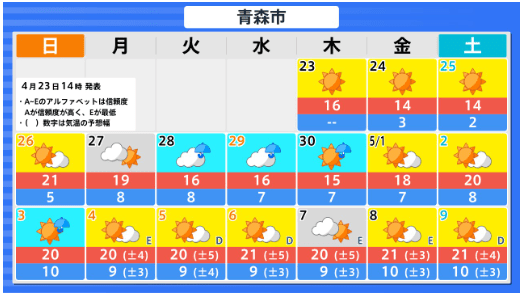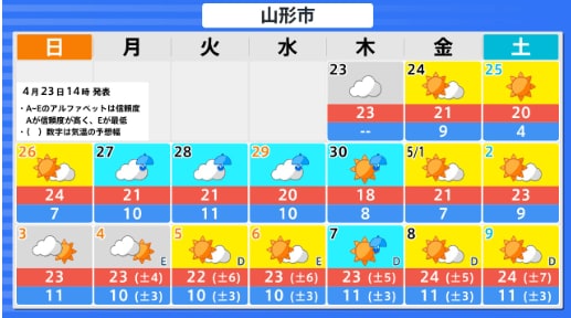 東北地方のGW中の天気はどうなる? 向こう1か月(4/25~5/24)の天候の見通しは? 平均気温・降水量・日照時間は? 東北・全国の天気を画像で 気象庁 2026年4月23日(木) 16:28 国内 ■東北地方各県のGW中の天気は?(画像)