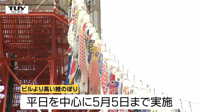 ビルより高い鯉のぼり! 園児が地上70メートルの場所に鯉のぼりを掲げる(山形) 2026年4月23日(木) 17:49 国内 ■園児は 園児「楽しかった。あげるところ」 園児「気持ちよく泳いでいる」 園児「綺麗で可愛かった」 鯉のぼりは高いビルの上から子どもたちの健やかな成長を願い平日を中心に5月5日子どもの日まであげられるということです。