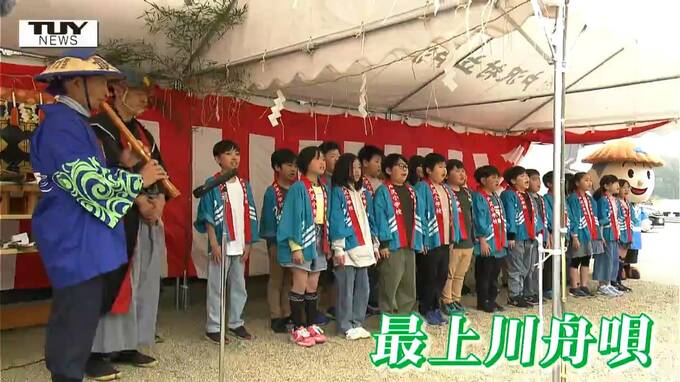 きょうは本格的な行楽シーズンを前に関係者が今年の舟の安全運行を願いました。安全祈願祭では地元の戸沢学園の4年生24人が元気一杯に最上川舟唄を披露しました。