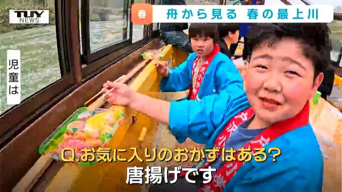 そして最上川舟下りの名物船頭さんのトークが舟上を盛り上げます。