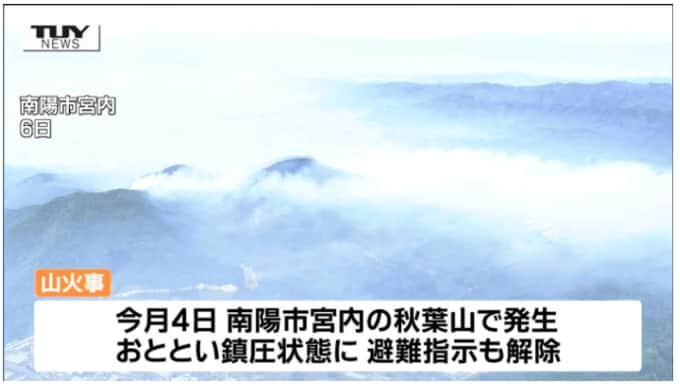 山形県南陽市の山火事は、発生から6日目で火は延焼が拡大する危険性がない「鎮圧状態」となり、住民への避難指示も解除されていますが、鎮火には至っていません。