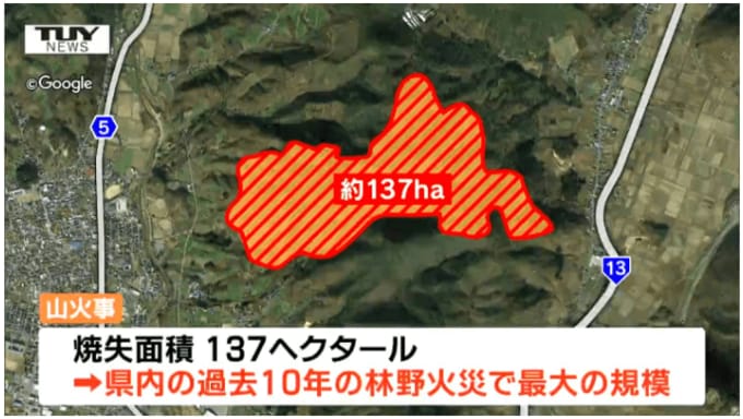 今回の山火事で焼けた面積は137ヘクタールにのぼり、県内で過去10年に起きた林野火災で最大の規模となっています。