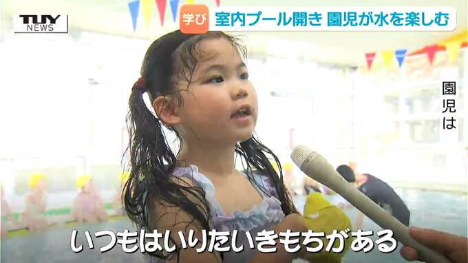園児「(Qこのプールって冷たいの?)あたたかい!(Qどれくらいあたたかいの?)まあまあくらい!」