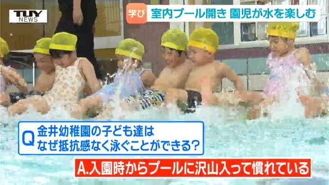 園児「(Qプールに入るのは何回目くらい?)いつもはいっている。(Q怖くないの?)こわくない。もぐるのたのしいから」