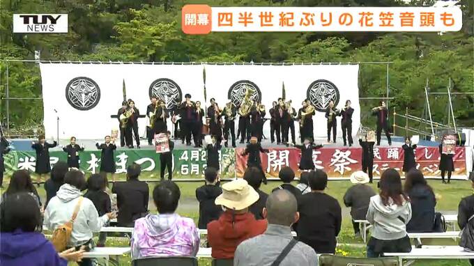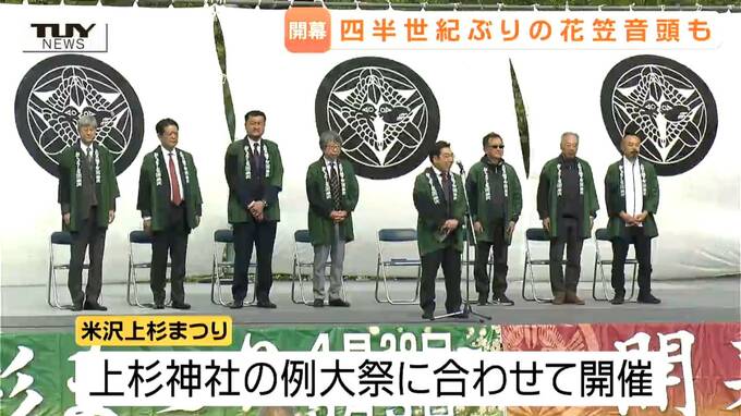 上杉家ゆかりの城下町に春を告げる「米沢上杉まつり」が開幕し、太鼓や踊りでオープニングを賑やかに祝いました。市内を練り歩く「民踊流し」では、四半世紀ぶりに復活した踊りが披露されました。