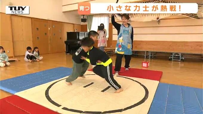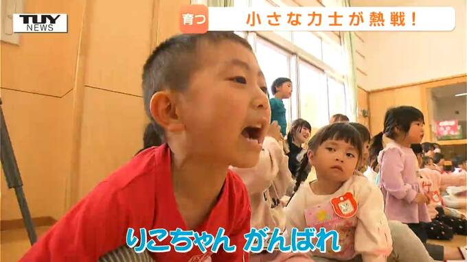 東根市のこども園では、子どもの日を前に恒例の「すもう大会」が開かれ、小さな力士たちが熱戦を繰り広げました。