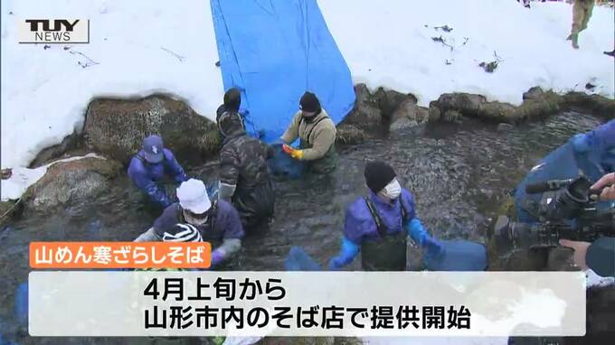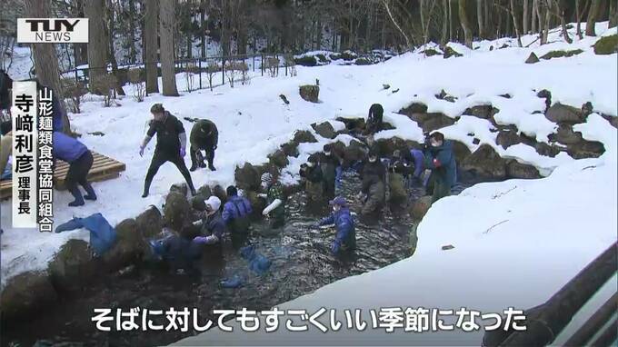 山形市では、名物の「寒ざらしそば」を作ろうと、そばの実を沢の水に浸す作業が行われました。