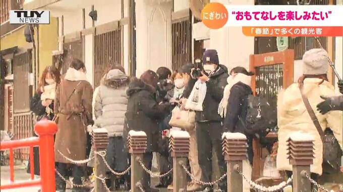 話を聞いた旅館では、春節が終わる今週27日まで、客室は予約で満室に。