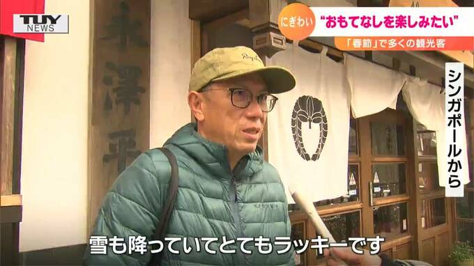 シンガポールから「雪も降っていて、とてもラッキーです。(観光地を)たくさん見て、食べて、歩いて、毎晩温泉に入って楽しみます。