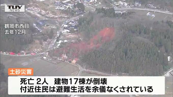 山形県鶴岡市の土砂災害 対策工事が国の緊急事業に採択 2023年2月1日(水) 19:13 国内 山形県鶴岡市で起きた土砂災害の対策工事が国の緊急事業に決まり、およそ11億円をかけて土砂の排出や水路の設置が行われることになりました。1か月前に鶴岡市西目(にしめ)で起きた土砂災害では、2人が死亡、建物1…