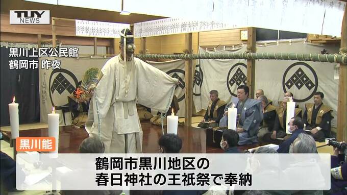 山形県鶴岡市黒川地区で500年以上前から伝わるとされる伝統芸能「黒川能(くろかわのう)」が、昨夜(1日)から今朝(2日)にかけて上演されました。