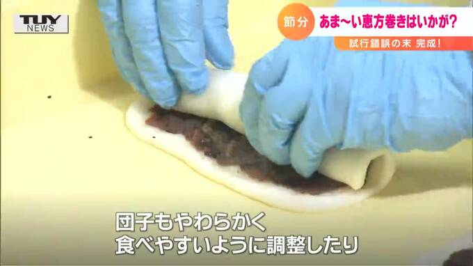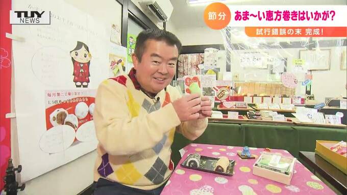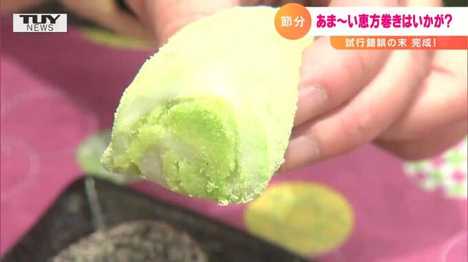節分というと、最近は、大きなのり巻きの「恵方巻」をイメージする方も多いかもしれませんが、「甘~い恵方巻」はいかがですか?鈴木アナウンサーのリポートです。