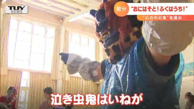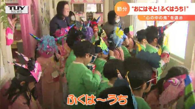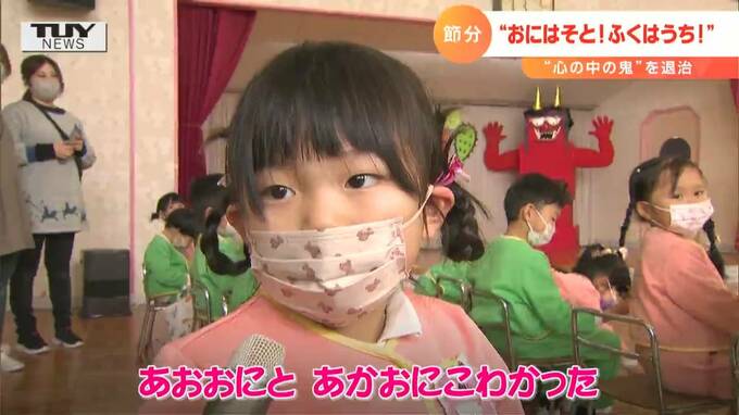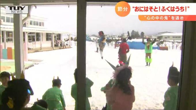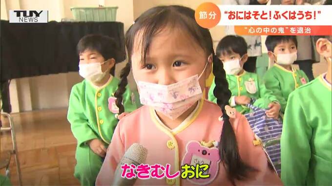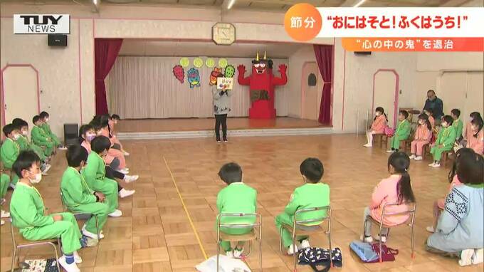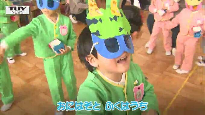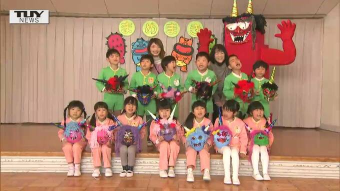 山形市の幼稚園では、恒例の豆まきが行われました。