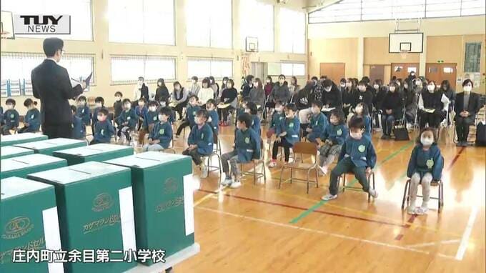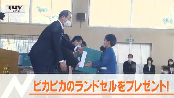きょう(6日)、山形県庄内町の余目第二小学校で行われたのは、ランドセルの贈呈式。