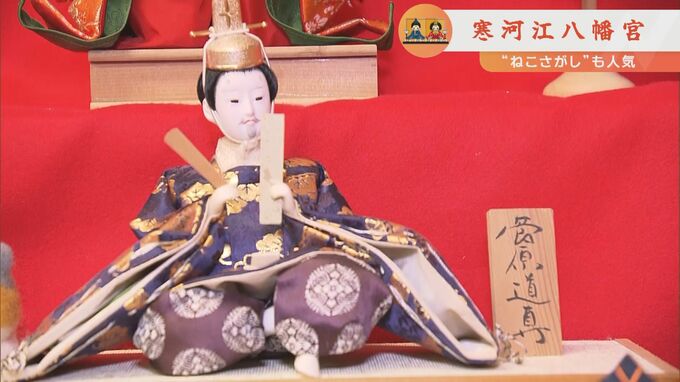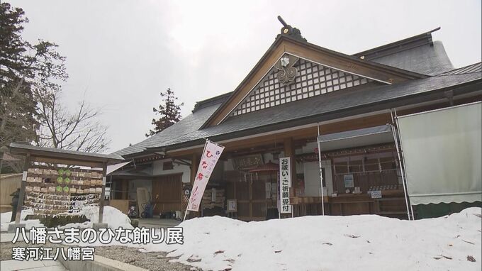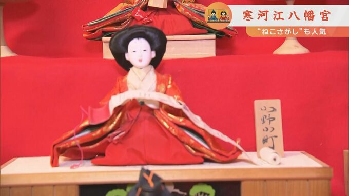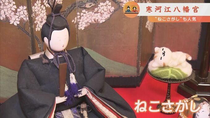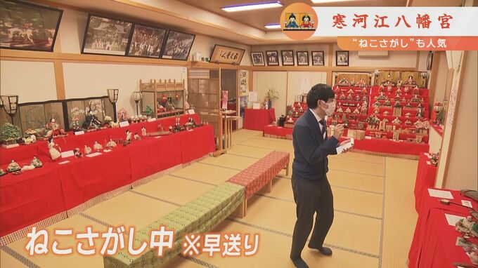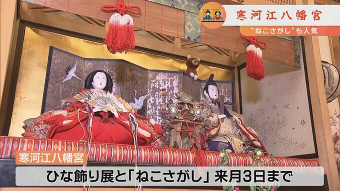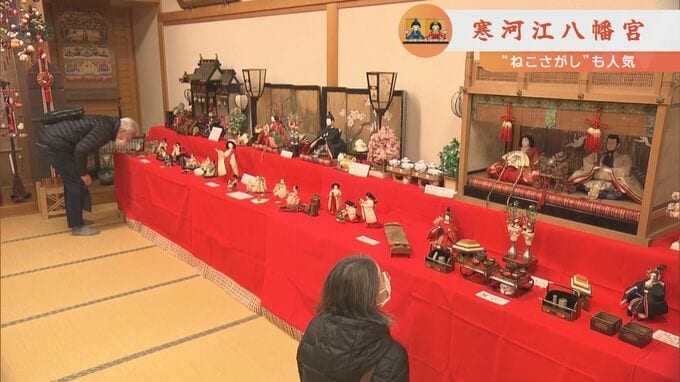 寒河江八幡宮のひな飾り展と「ねこさがし」は来月3日まで行われています。