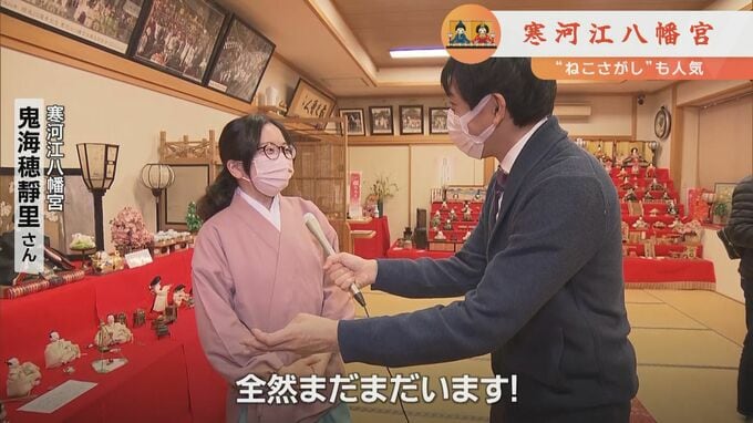 寒河江八幡宮・鬼海穂靜里さん「毎年楽しみに来てくれている方がいるので、その方にも楽しんでもらえるよう難易度が上がっております。お雛様を楽しんだ後に余興としてねこを探してもらえたら」