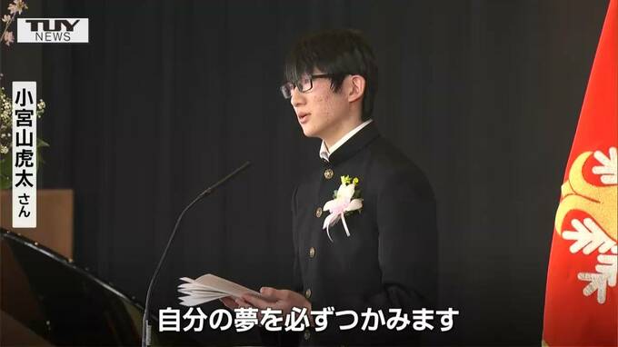 小宮山虎太さん「これから私たちは新たな道にそれぞれ進んでいきます。時々、つまずくこともあると思いますが何度でも立ち上がり、再び歩き自分の夢を必ずつかみます」