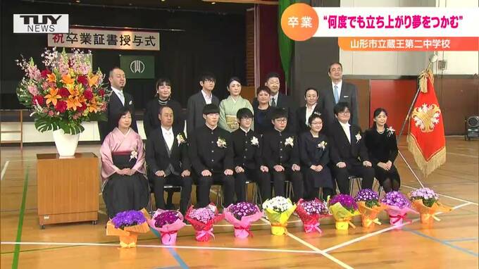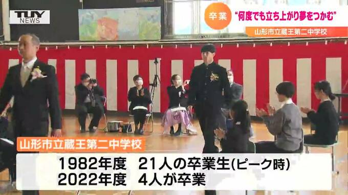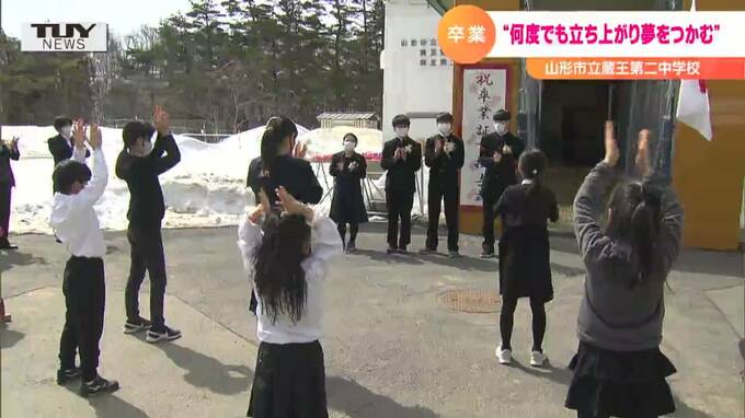 山形市の蔵王第二中学校では、4人の卒業生が後輩からの温かいエールを受け、学び舎を笑顔で巣立っていきました。
