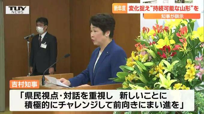 山形県庁では、吉村知事が「未来への変化を捉え、持続可能な山形を作ってほしい」と呼びかけました。