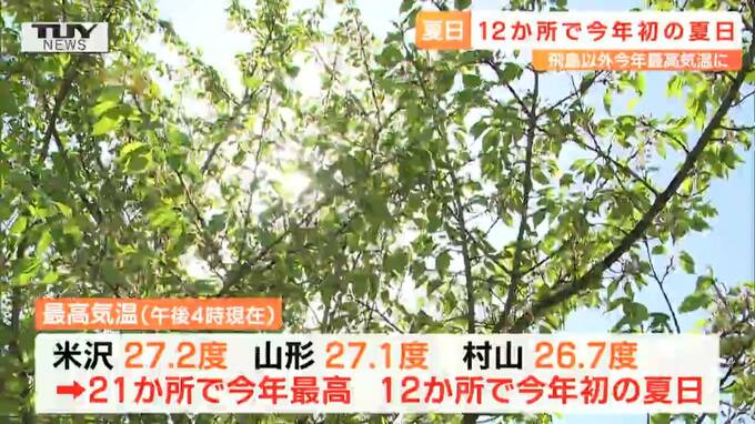 気温ぐんぐん上昇 山形県内の観測地点12か所で“夏日”に 2023年4月20日(木) 17:31 国内 20日の山形県内は、日中、気温がぐんぐん上がり、今年初の夏日となりました。街の人「素晴らしい天気で動きたくなりますよね。朝晩は寒いので、何を着ていいのかわからなくなりますね」山形市の嶋遺跡公園です。午…